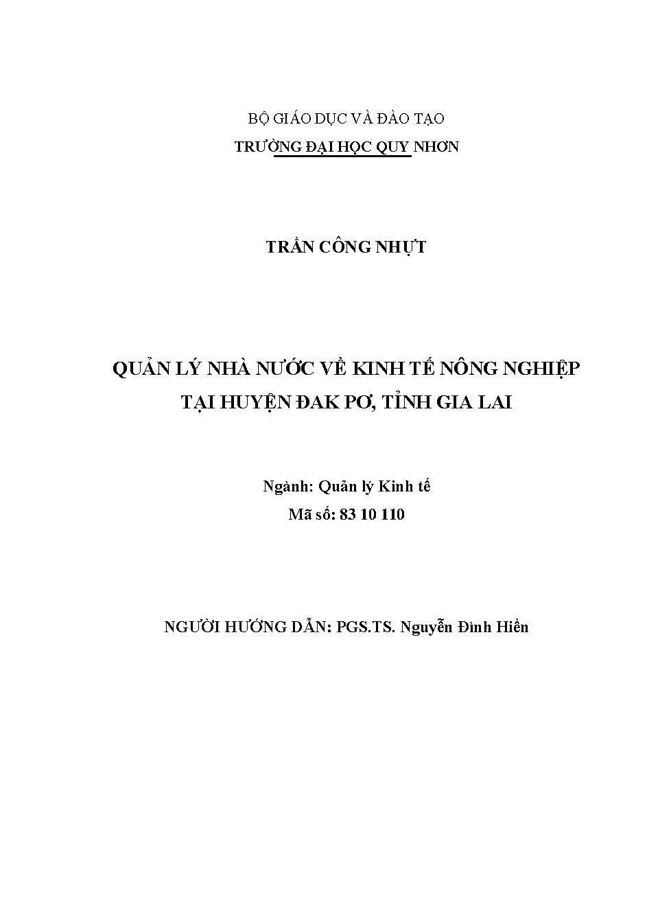 Quản lý nhà nước về nông nghiệp trên địa bàn huyện Phù Mỹ, tỉnh Bình Định