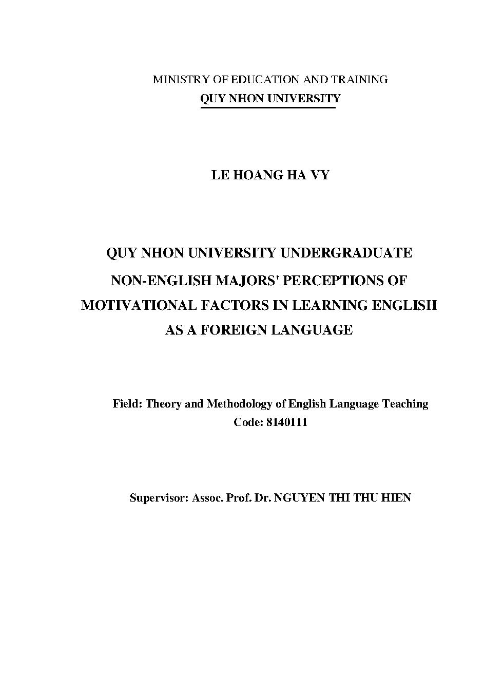 Quy Nhon university undergraduate non-english majaor's perceptions of motivational factors in learning english as a foreign language = Nhận thức của sinh viên không chuyên ngữ trường Đại học Quy Nhơn về các nhân tố động lực trong việc học tiếng Anh