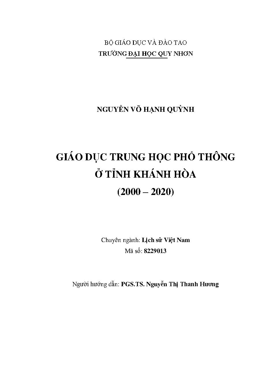 Giáo dục trung học phổ thông ở tỉnh Khánh Hòa (2000 - 2020)