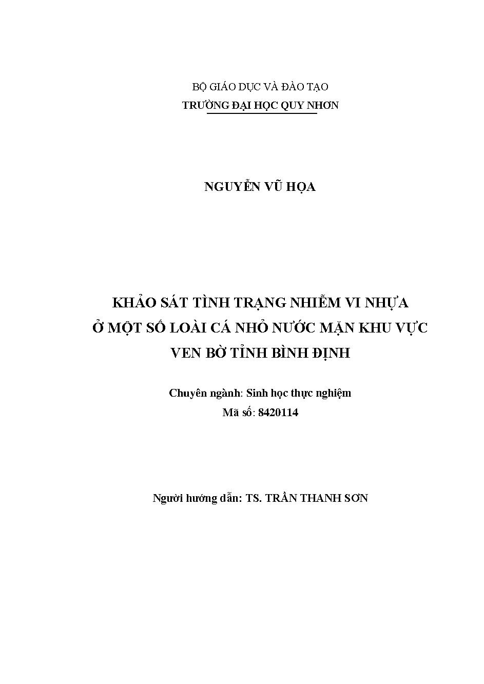 Khảo sát tình trạng nhiễm vi nhựa ở một số loài cá nhỏ nước mặn khu vực ven bờ tỉnh Bình Định.