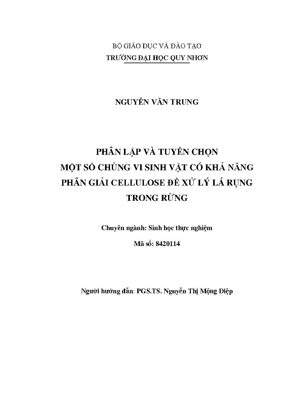 Phân lập và tuyển chọn một số chủng vi sinh vật có khả năng phân giải Cellulose để xử lý lá rụng trong rừng