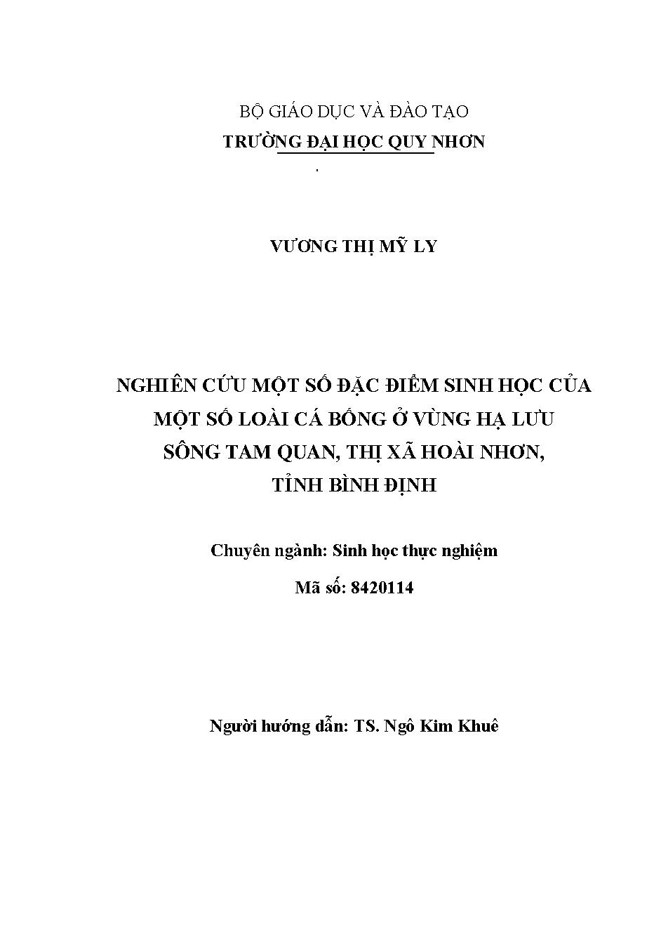 Nghiên cứu một số đặc điểm sinh học của một số loài cá bống ở vùng hạ lưu sông Tam Quan, thị xã Hoài Nhơn, tỉnh Bình Định
