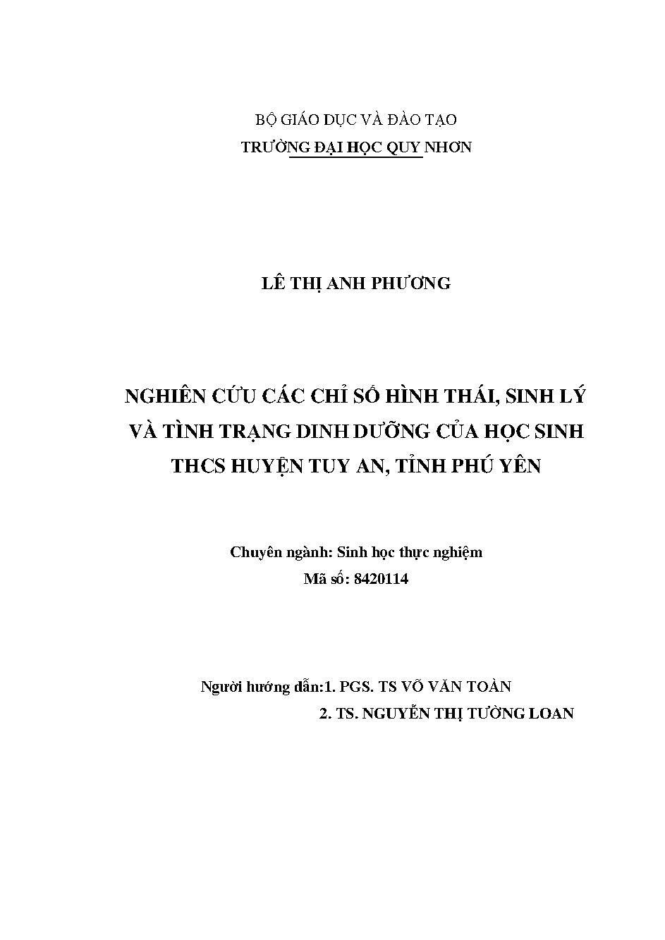 Nghiên cứu các chỉ số hình thái, sinh lý và tình trạng dinh dưỡng của học sinh trung học cơ sở huyện Tuy An, tỉnh Phú Yên