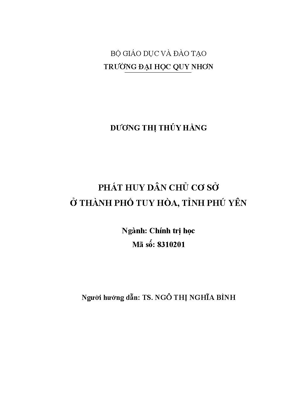 Phát huy dân chủ cơ sở ở thành phố Tuy Hòa, tỉnh Phú Yên