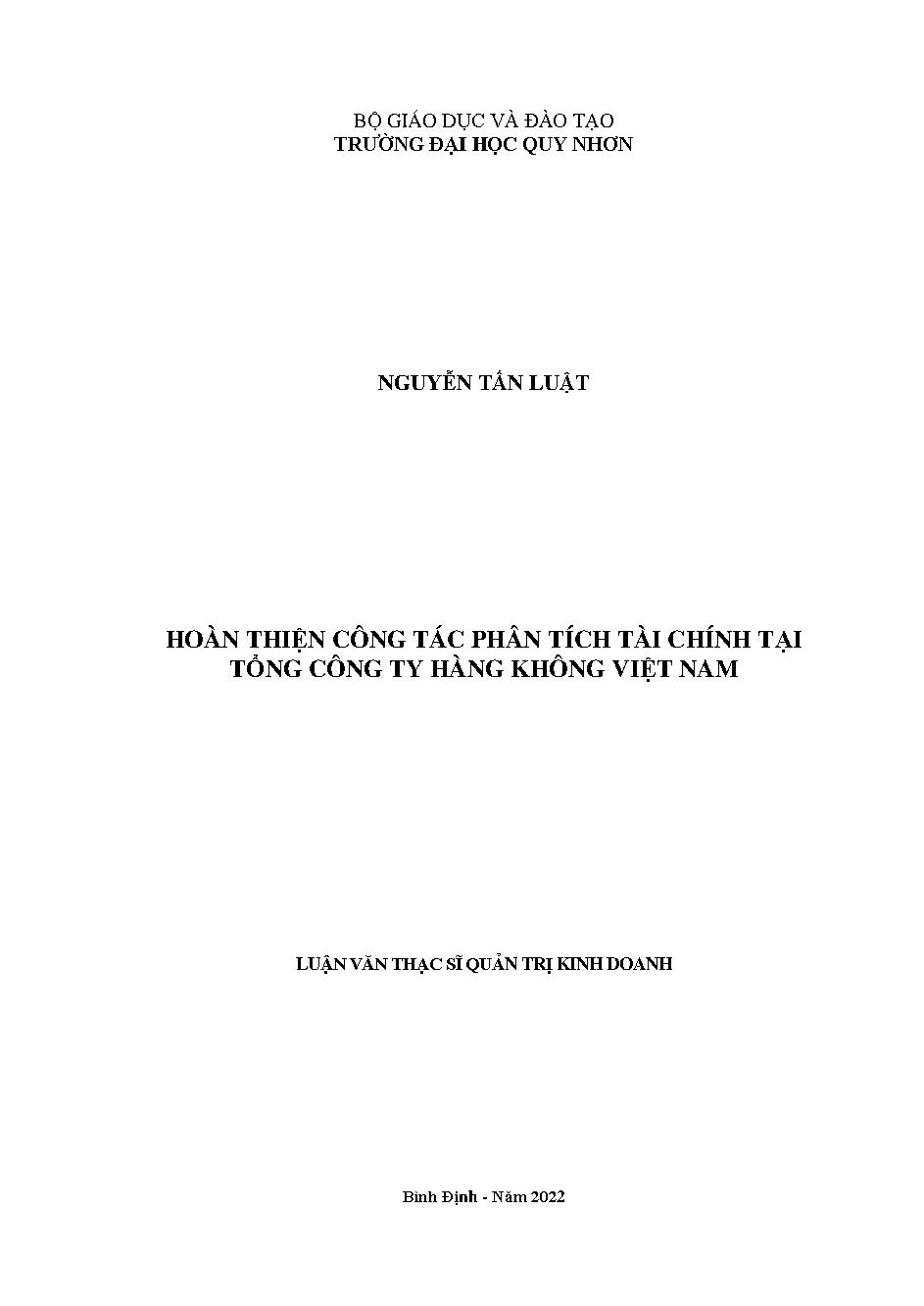 Hoàn thiện công tác phân tích tài chính tại tổng công ty hàng không Việt Nam