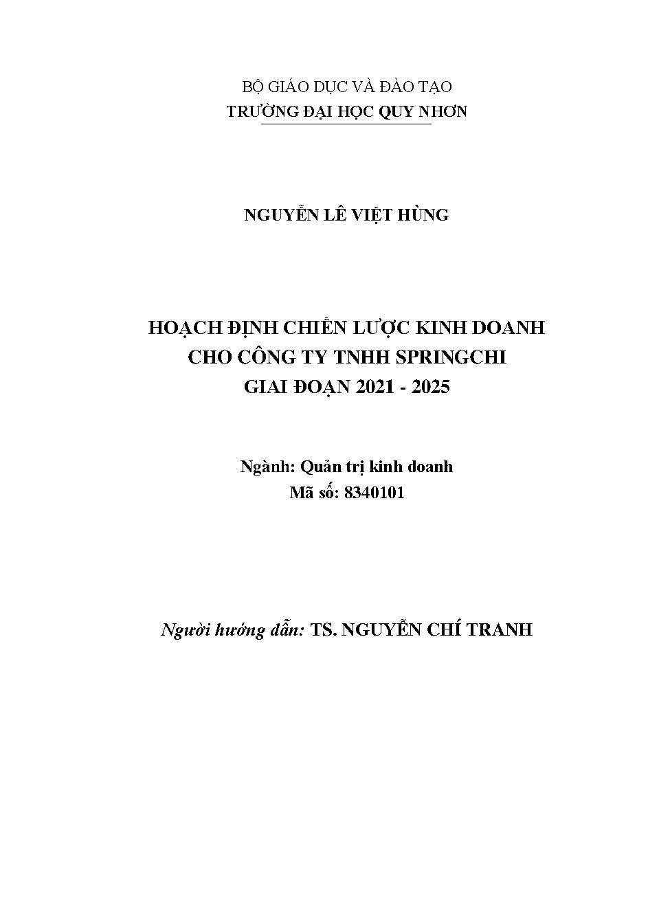 Hoạch định chiến lược kinh doanh cho Công ty trách nhiệm hữu hạn Springchi giai đoạn 2021-2025