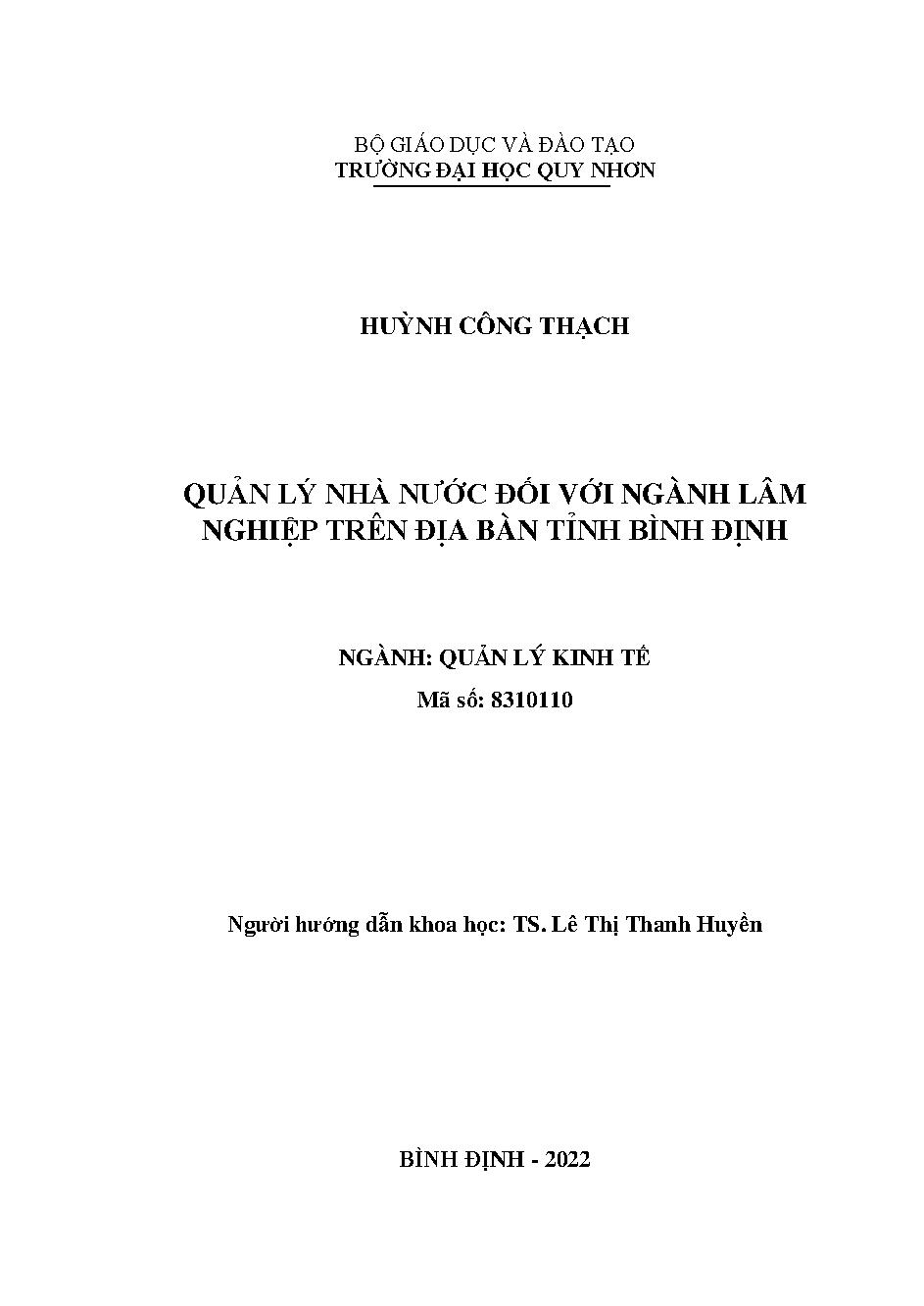 Quản lý nhà nước về ngành lâm nghiệp tại huyện Vĩnh Thạnh, tỉnh Bình Định