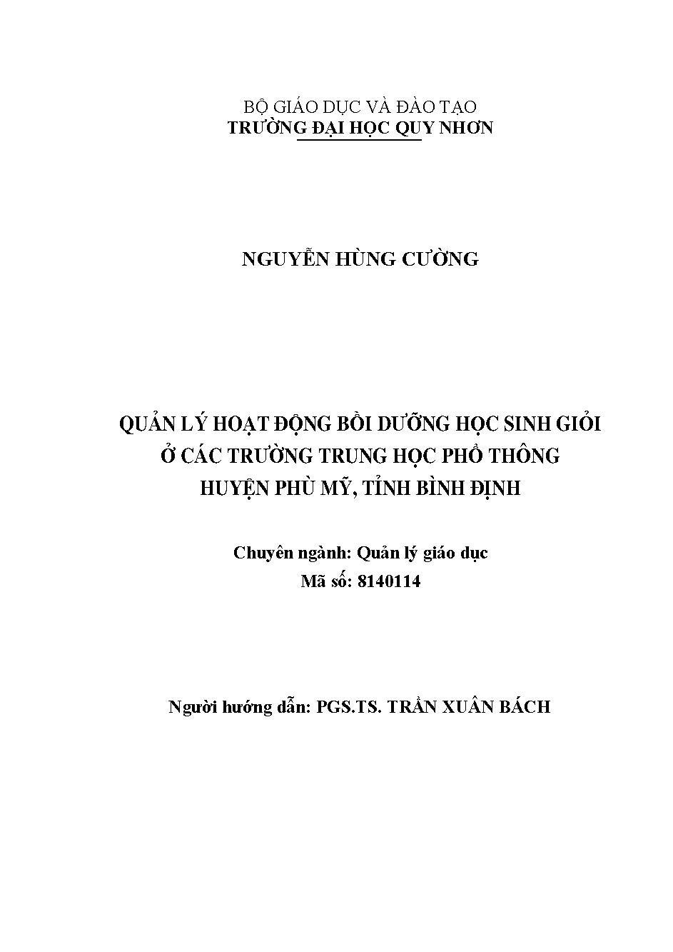 Quản lý hoạt động bồi dưỡng học sinh giỏi ở các trường trung học phổ thông huyện Phù Mỹ, tỉnh Bình Định