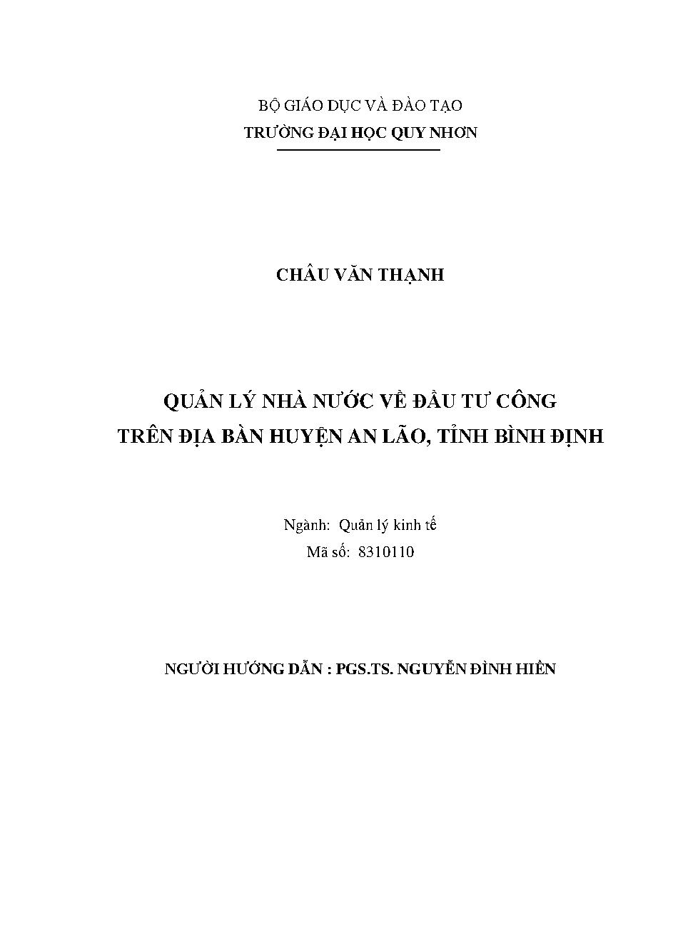 Quản lý nhà nước về đầu tư công trên địa bàn huyện An Lão, tỉnh Bình Định