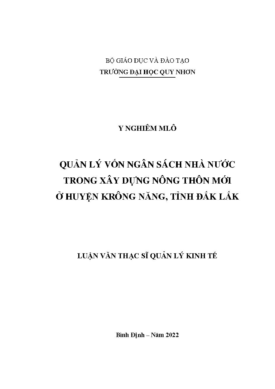 Quản lý vốn ngân sách nhà nước trong xây dựng nông thôn mới ở huyện Krông Năng, tỉnh Đắk Lắk