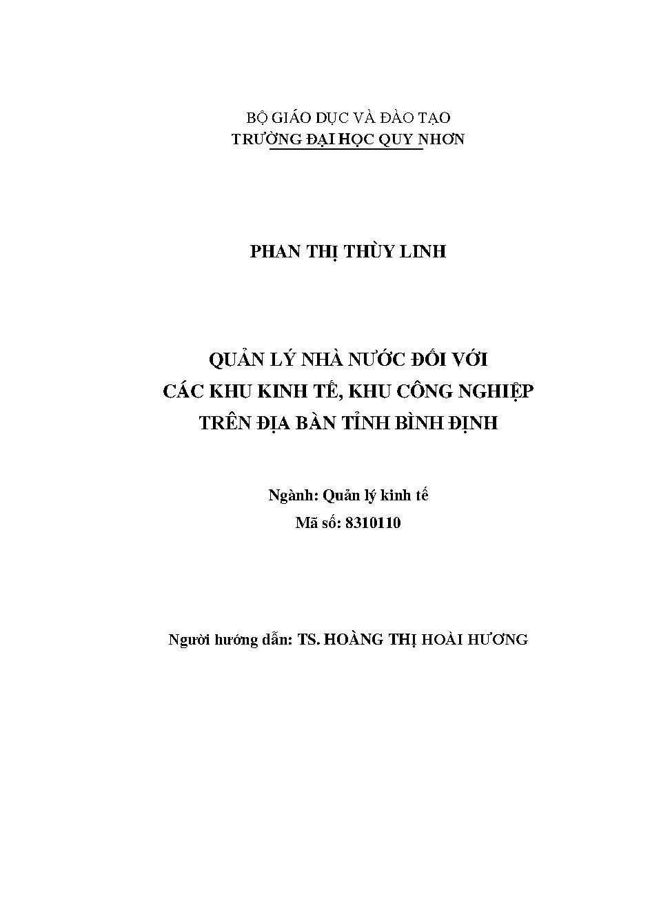 Quản lý nhà nước đối với các khu kinh tế, khu công nghiệp trên địa bàn tỉnh Bình Định