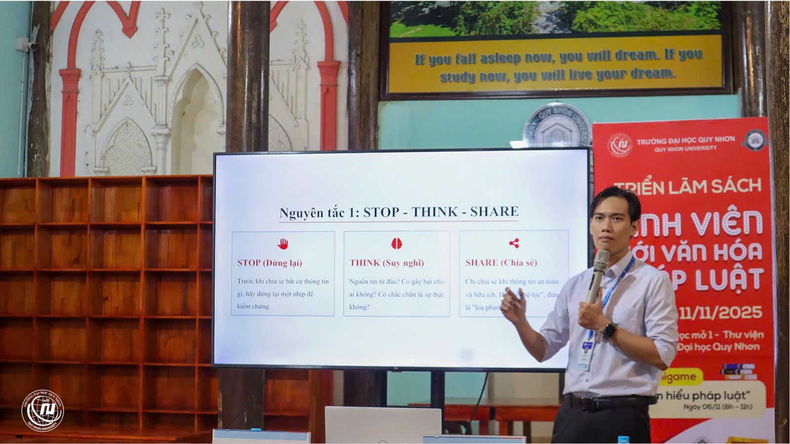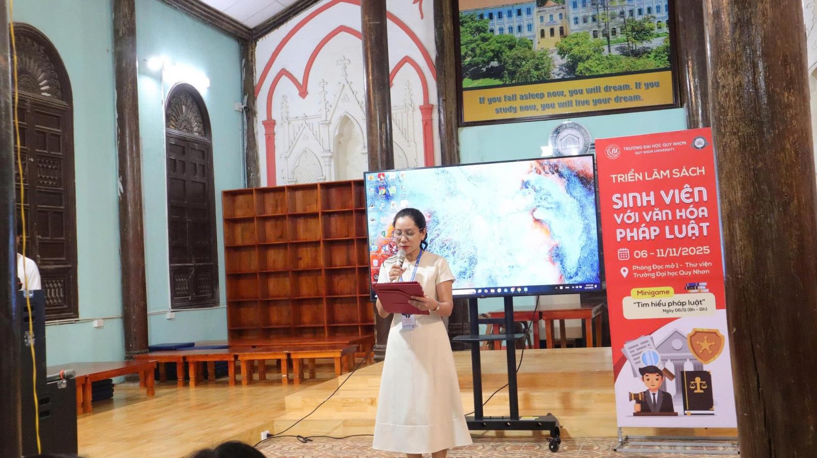 Sau một thời gian dài bị hoãn do tình hình bão lũ diễn ra phức tạp thì sáng nay, ngày 04/12/2025, Trung tâm Số và Học liệu – Thư viện Trường Đại học Quy Nhơn đã tổ chức thành công Triển lãm sách & Tọa đàm “Sinh viên với văn hóa pháp luật”